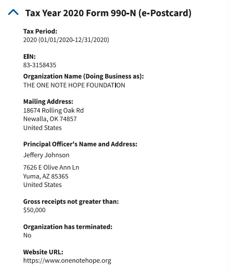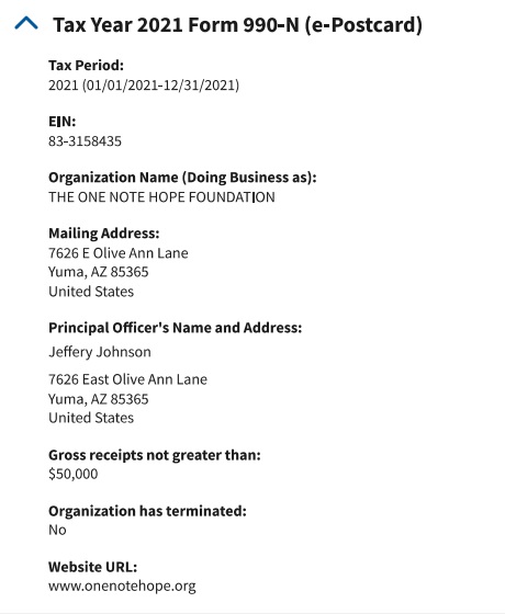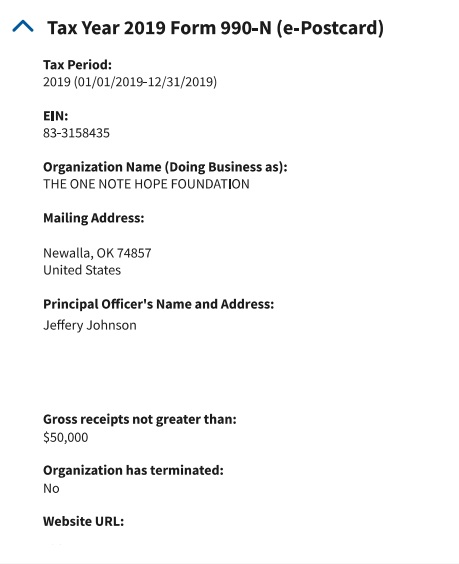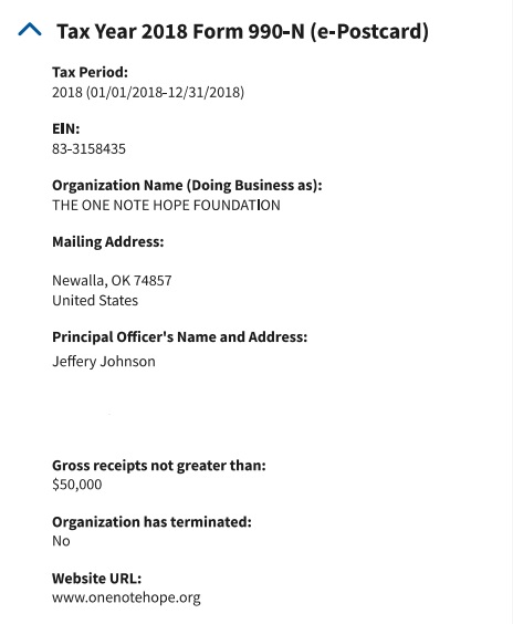 The name of this non-profit organization is “THE ONE NOTE HOPE FOUNDATION”. This organization is incorporated in accordance with the Oklahoma Statutes, Title 18, Corporations, as amended. The organization has not been formed for the purposes of making profit or obtaining personal financial gain. The assets and income of this organization shall not be distributed to or for the benefit of the trustees, directors, or any other officers. The assets and income shall only be used to promote non-profit purposes as described below. Nothing contained herein shall be deemed to prohibit the payment of a modest and reasonable compensation to employees and contractors for services provided for the benefit of the organization. This organization shall not carry on any activities not permitted to be carried out by a non-profit organization exempt from federal income tax. The organization shall not endorse any candidate or contribute to or work for or otherwise support or oppose any candidate for public office. This organization has been created exclusively for purposes subsequent to section 501(c)(3) of the Internal Revenue Code.